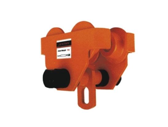 GCT系列單軌小車用途:廣泛地適用于工廠、礦山、碼頭、倉庫、建筑工地等,單軌小車用于安裝機器設備,吊運貨物的場合,單軌小車尤其適用于無電源地點的作業。