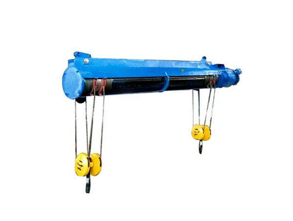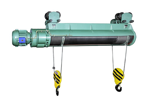 市場上雙鉤雙吊點電動葫蘆所謂雙吊點鋼絲繩電動葫蘆是指有兩個間隔一定距離的吊點,并能同時上升或同時下降的電動葫蘆?,F有的雙吊點鋼絲繩電動葫蘆有,在- - 臺鋼絲繩電動葫蘆卷筒兩端各有-套吊鉤滑輪裝置,這種雙吊點電動葫蘆因兩套吊鉤滑輪裝置均由--個卷筒起升或下降,可以保證兩吊點同時升降;