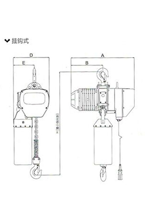 掛鉤式環鏈電動葫蘆(0.25T-5T) 尺寸參考: | |||||