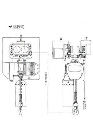 運行式環鏈電動葫蘆(0.25T-5T) 尺寸參考: | ||||||