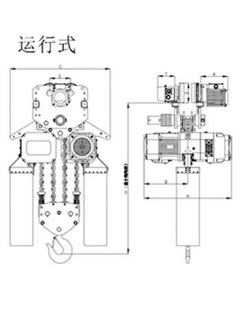 運行式環鏈電動葫蘆(7.5T-50T)尺寸參數: | ||||||||
